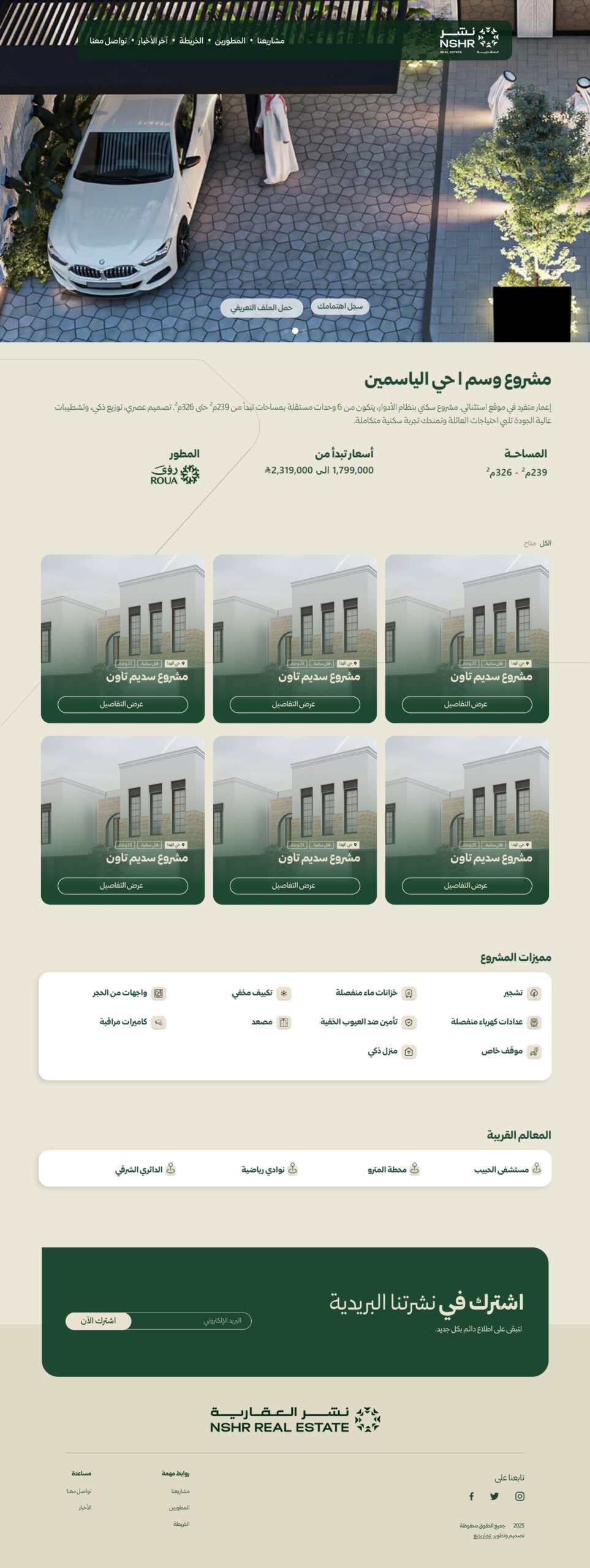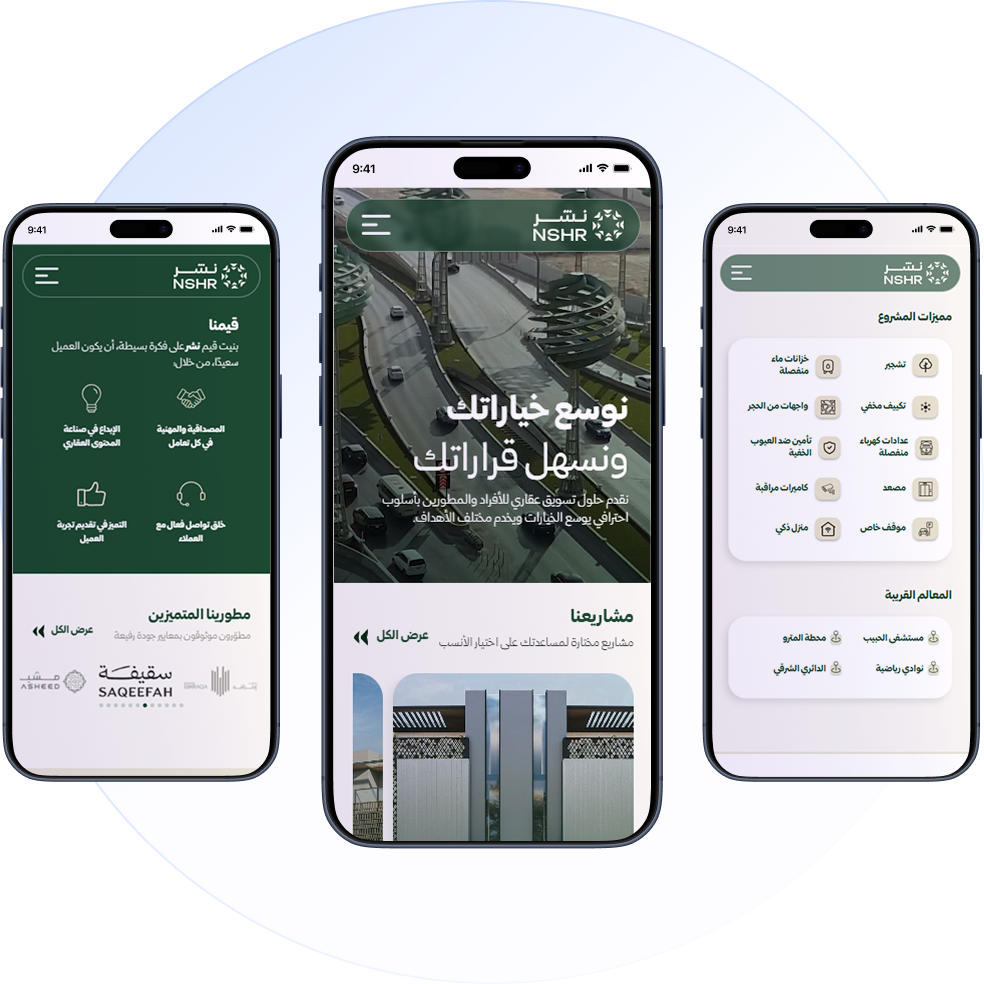 تم تصميم الموقع كمنصة تسويقية تعرض المشاريع بطريقة احترافية، وتبرز خبرة الشركة في إدارة وتسويق العقار، مع تسهيل رحلة العميل من الاستكشاف إلى التواصل.